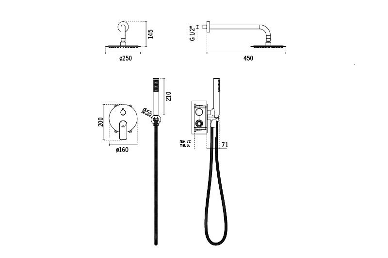 Luso circular concealed shower kit with 4 outlets